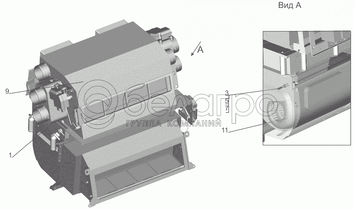 Каталог запасных частей к технике: МАЗ-4371P2-0000421-000. Отопитель 631019-8101010