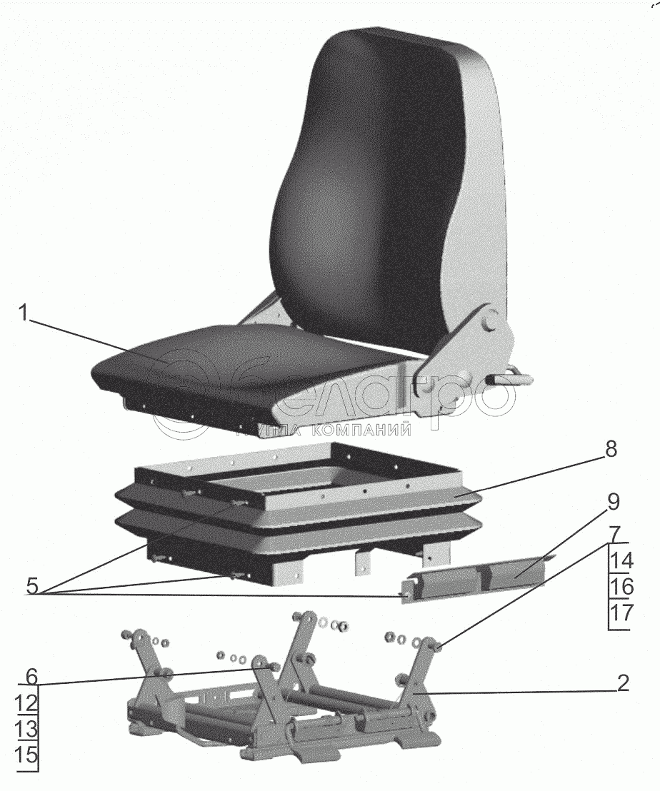 Каталог запасных частей к технике: МАЗ-4371P2-0000421-000. Сиденье водителя 6430-6800010