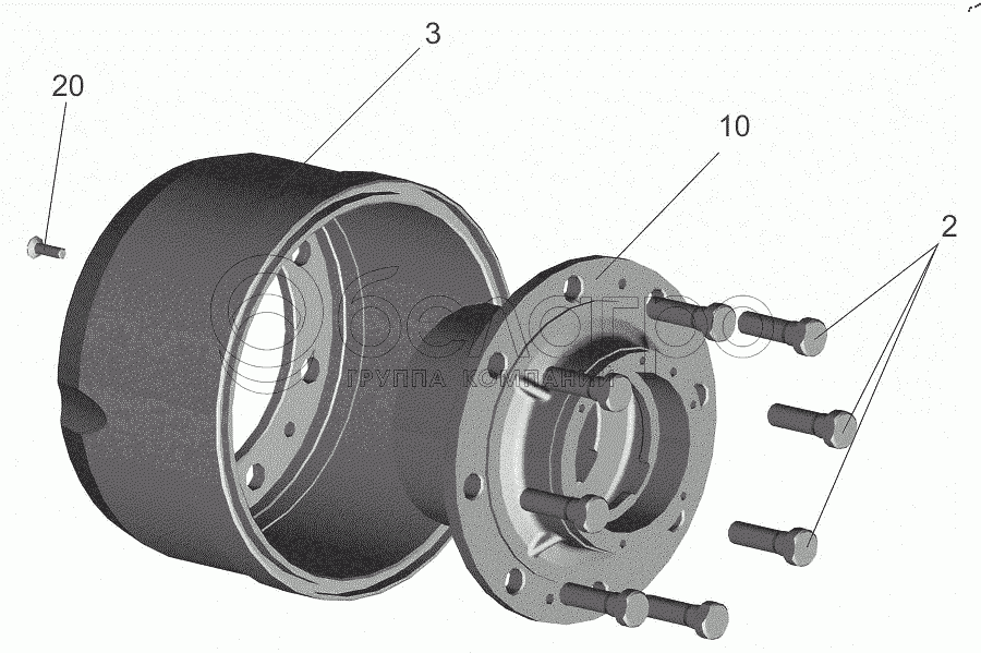 Каталог запасных частей к технике: МАЗ-4371P2-0000421-000. Ступица с барабаном