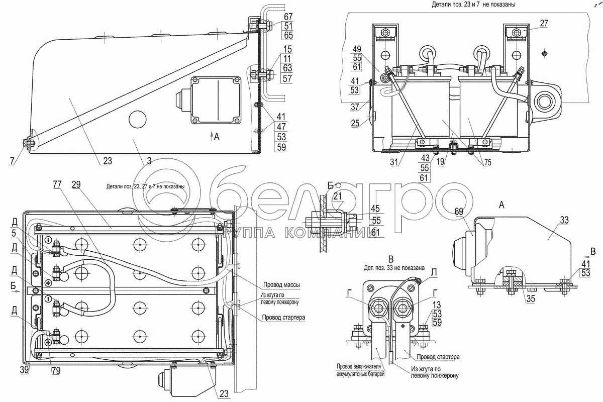 Каталог запасных частей к технике: МАЗ-4371P2-0000421-000. Установка аккумуляторных батарей