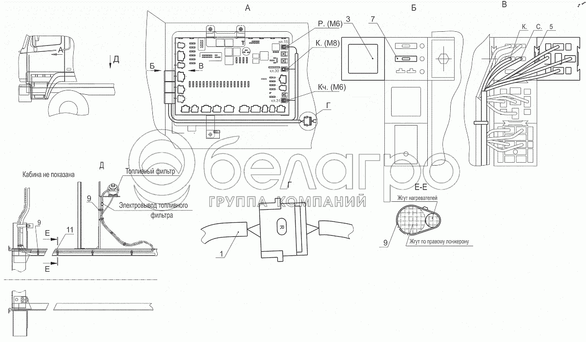 Каталог запасных частей к технике: МАЗ-4371P2-0000421-000. Установка нагревателей на двигателе