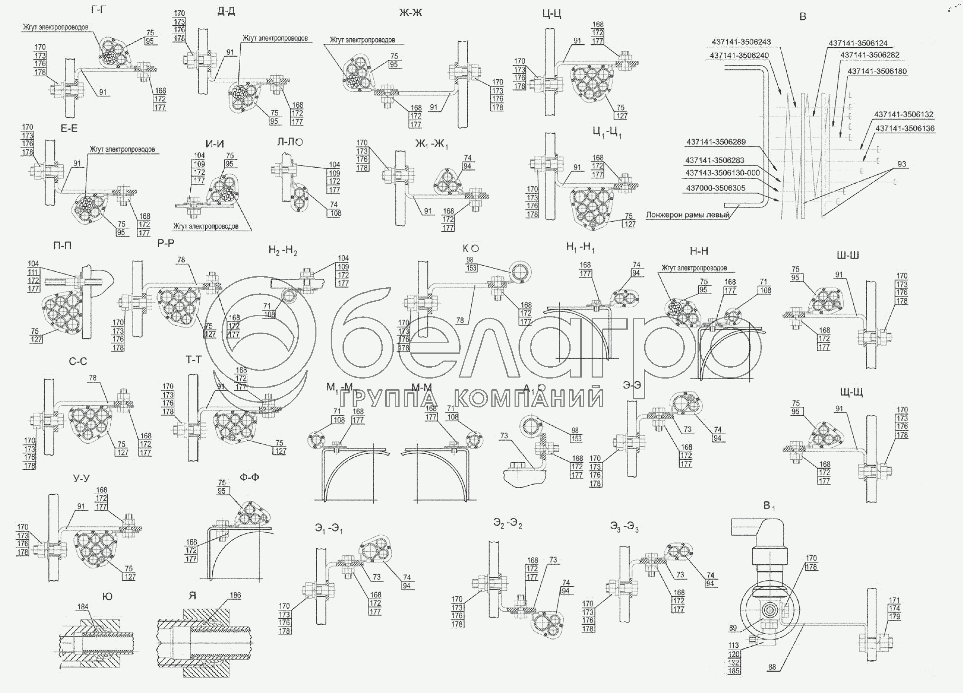 Каталог запасных частей к технике: МАЗ-4371P2-0000421-000. Установка пневмотормозов
