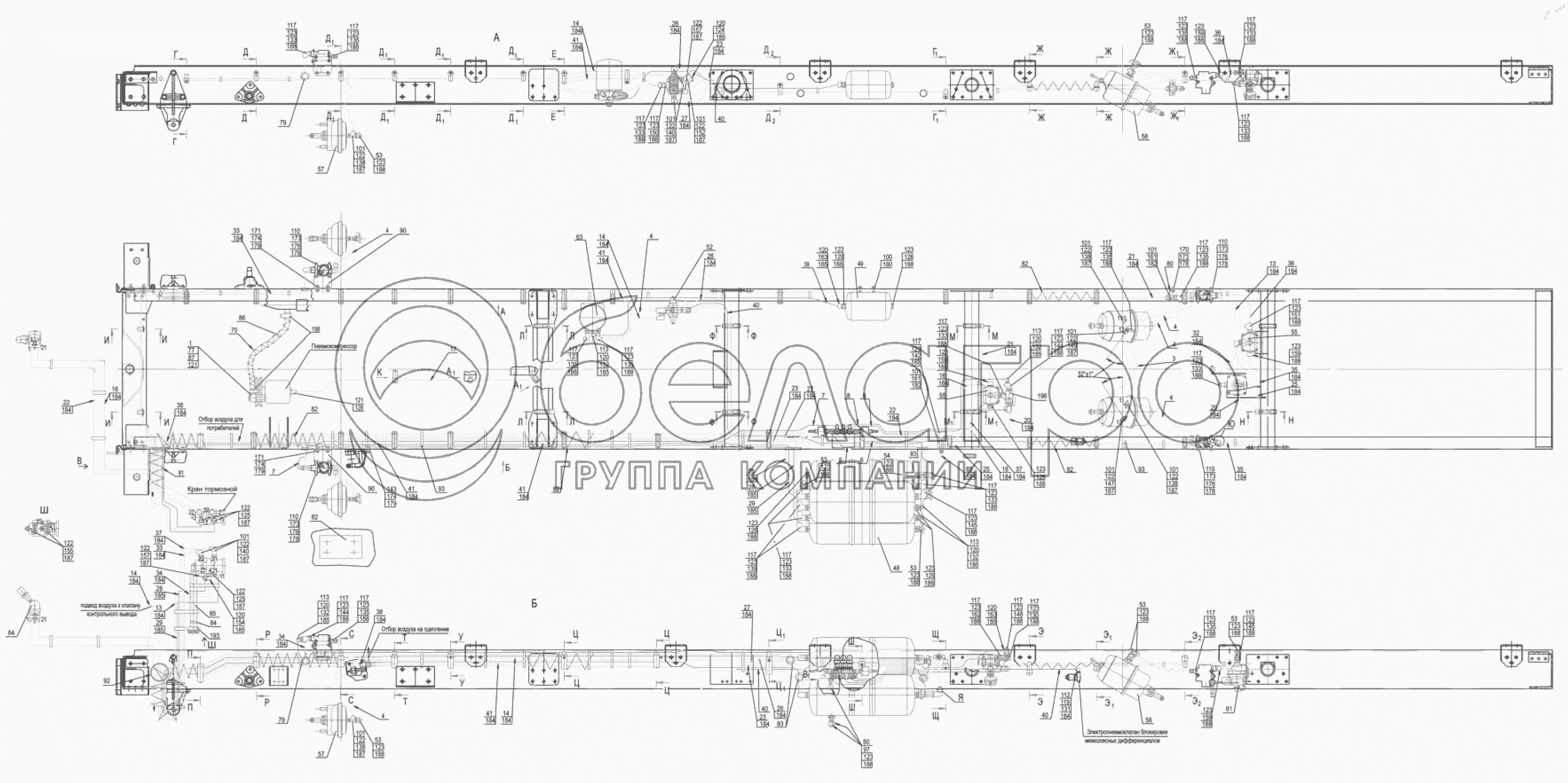 Каталог запасных частей к технике: МАЗ-4371P2-0000421-000. Установка пневмотормозов