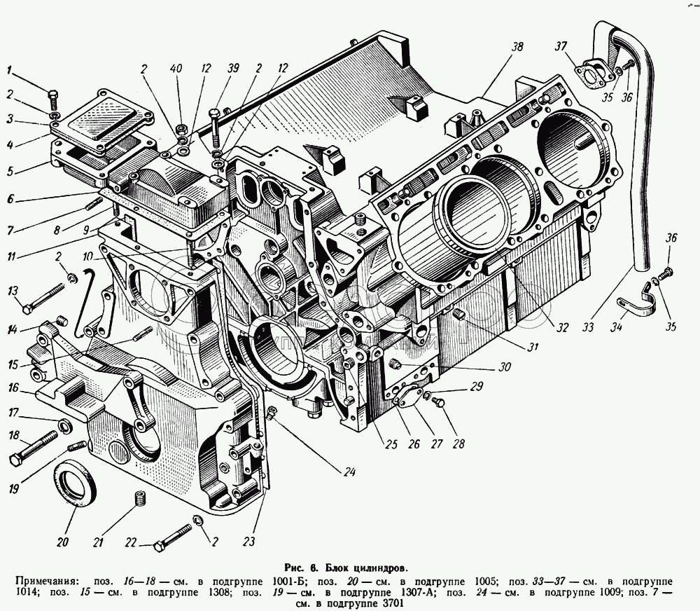 Каталог запасных частей к технике: МАЗ-500А. Блок цилиндров