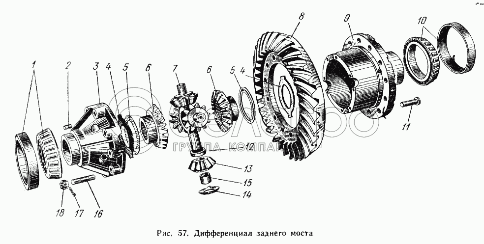 Каталог запасных частей к технике: МАЗ-500А. Дифференциал заднего моста