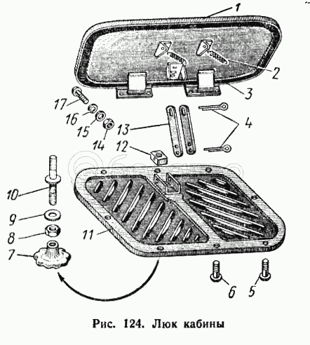 Каталог запасных частей к технике: МАЗ-500А. Люк кабины