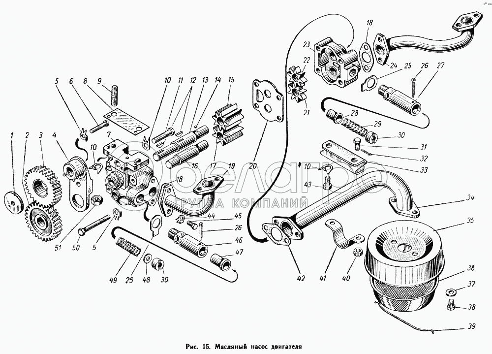 Каталог запасных частей к технике: МАЗ-500А. Масляный насос двигателя