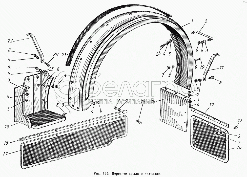 Каталог запасных частей к технике: МАЗ-500А. Переднее крыло и подножка