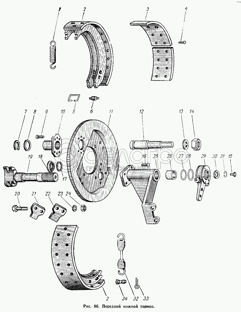 Каталог запасных частей к технике: МАЗ-500А. Передний ножной тормоз