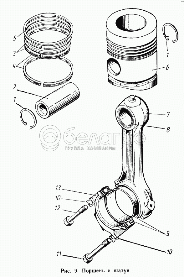 Каталог запасных частей к технике: МАЗ-500А. Поршень и шатун