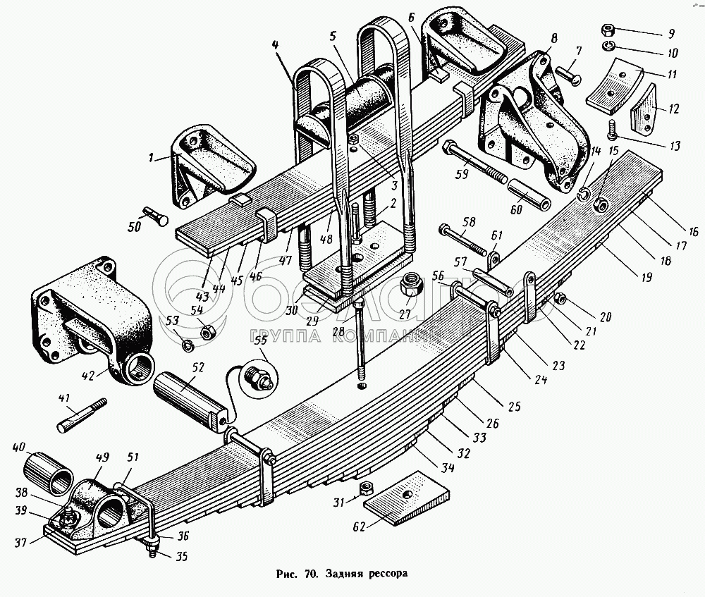 Каталог запасных частей к технике: МАЗ-500А. Рессоры задние дополнительные. Подгруппа 2913-А