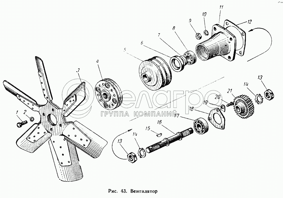 Каталог запасных частей к технике: МАЗ-500А. Вентилятор