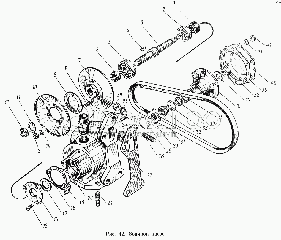 Манжета сальника водяного насоса, большая и малая обоймы манжеты, упорное кольцо и пружина сальника (комплект для ремонта водяного насоса)