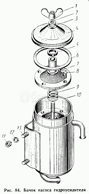 Каталог запасных частей к технике: МАЗ-503А. Бачек насоса гидроусилителя