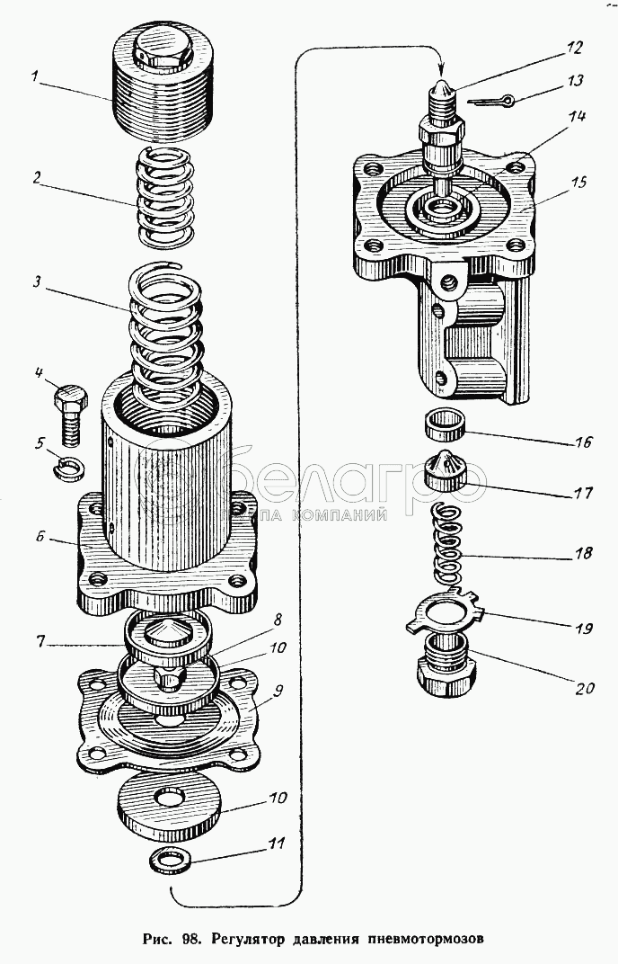 Каталог запасных частей к технике: МАЗ-503А. Регулятор давления пневмотормозов