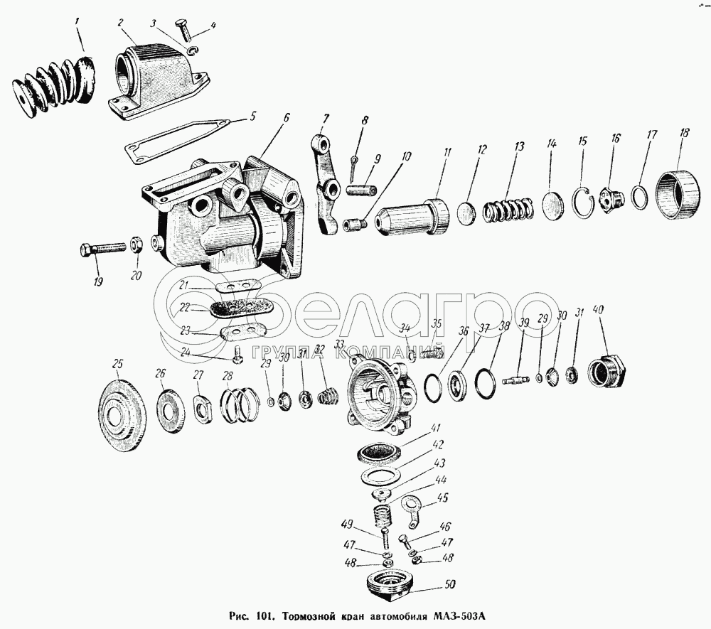 Каталог запасных частей к технике: МАЗ-503А. Тормозной кран автомобиля МАЗ-503А