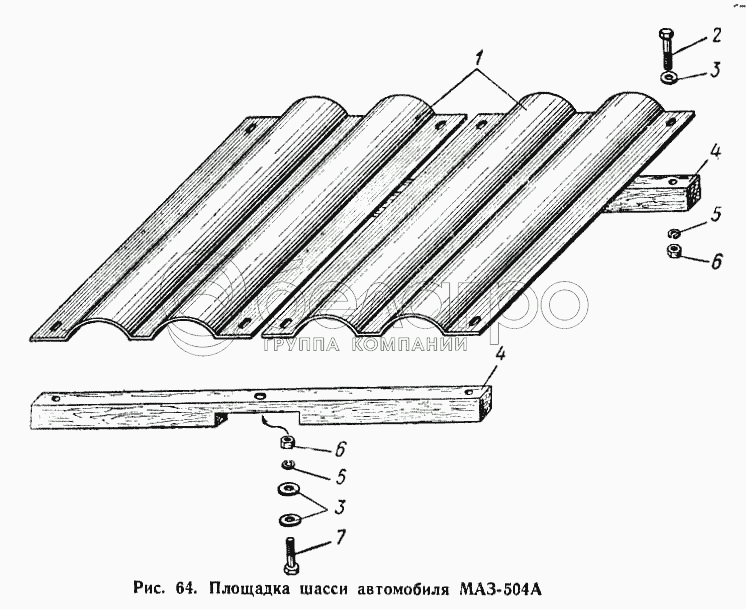 Каталог запасных частей к технике: МАЗ-504А. Площадки шасси автомобиля МАЗ-504А