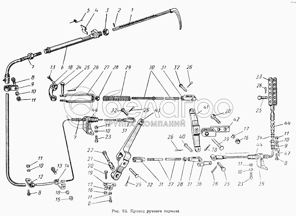 Каталог запасных частей к технике: МАЗ-504А. Привод ручного тормоза