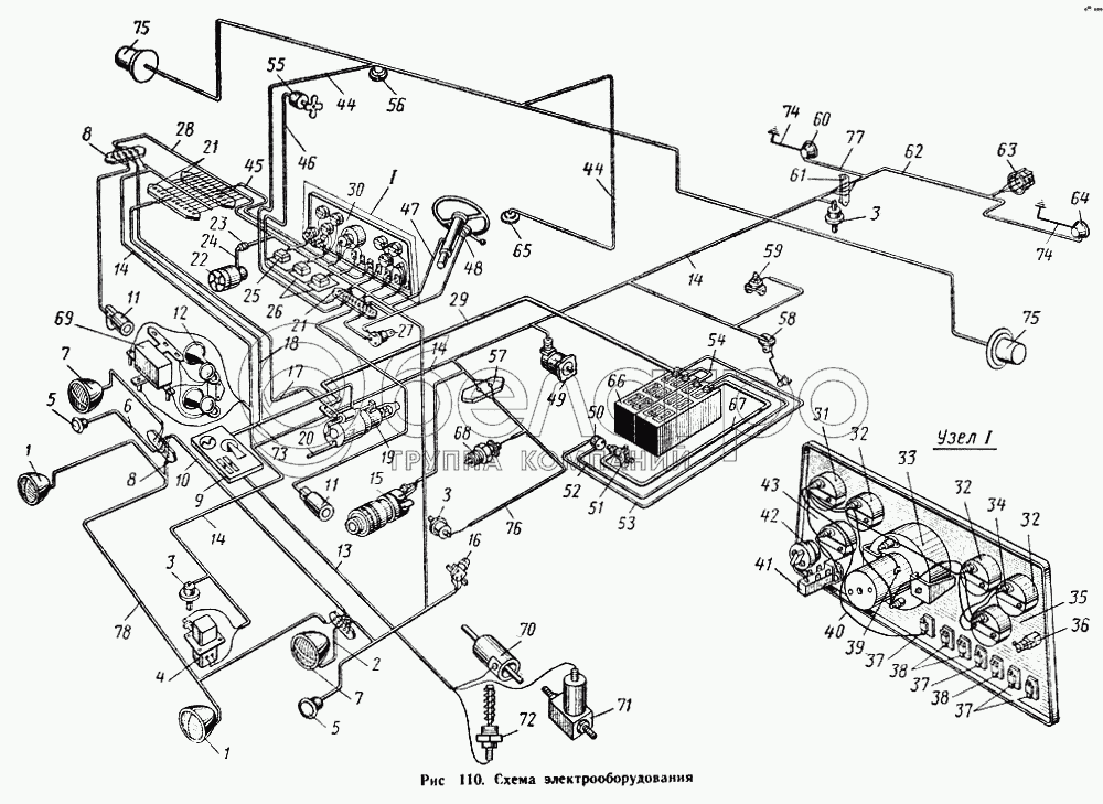 Пучок проводов стартера (при установке предпускового подогревателя)