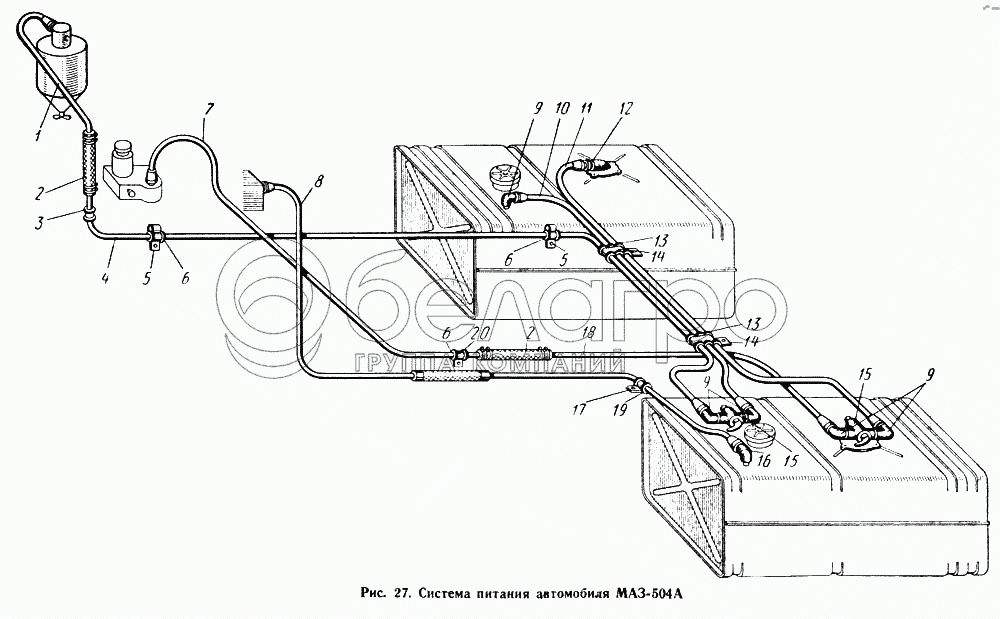 Трубка топливная всасывающая от дополнительного топливного бака к крану в сборе