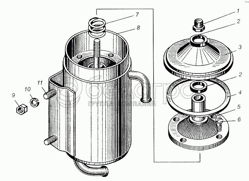 Каталог запасных частей к технике: МАЗ-504В. Бачок насоса гидроусилителя рулевого управления