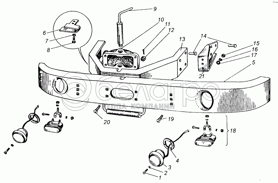 Каталог запасных частей к технике: МАЗ-504В. Бампер передний и крепление противотуманных фар