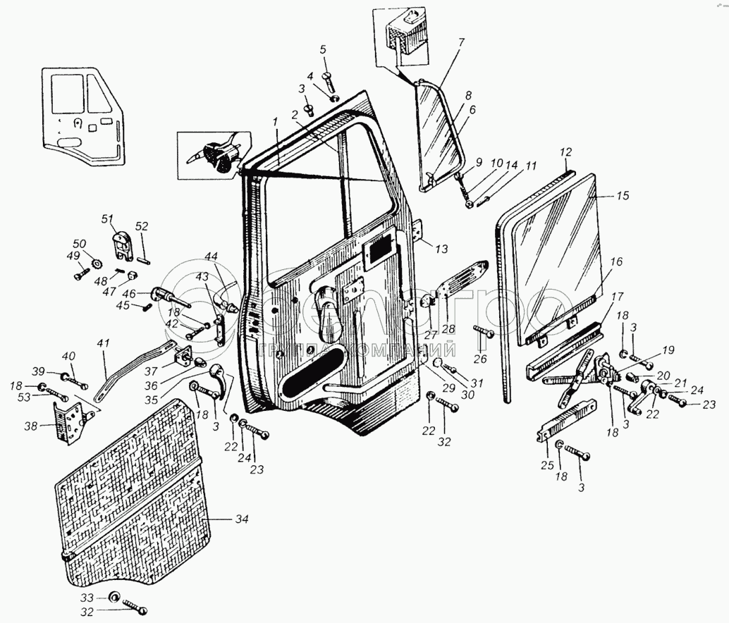 Каталог запасных частей к технике: МАЗ-504В. Дверь кабины