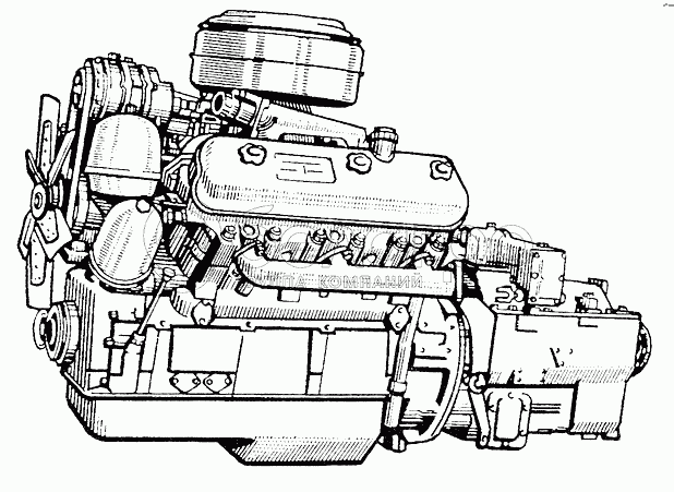 Двигатель с оборудованием (без сцепления и коробки передач) в сборе