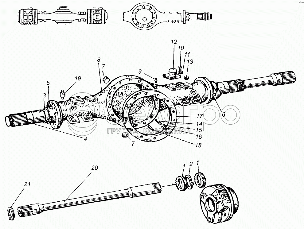Каталог запасных частей к технике: МАЗ-504В. Картер заднего моста с полуосями и кожухами