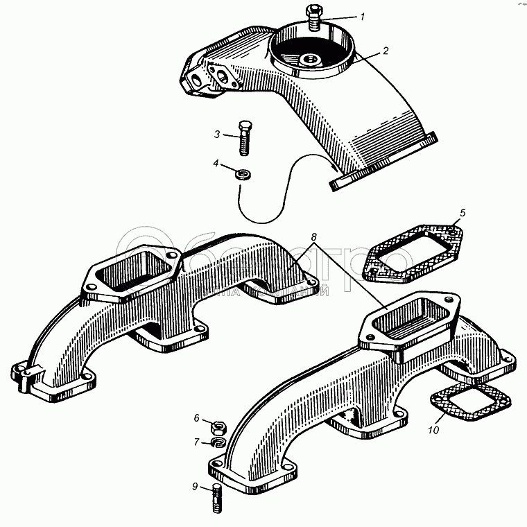 Каталог запасных частей к технике: МАЗ-504В. Коллектор впускной