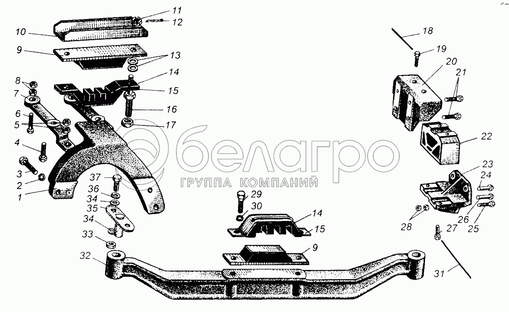 Каталог запасных частей к технике: МАЗ-504В. Крепление силового агрегата