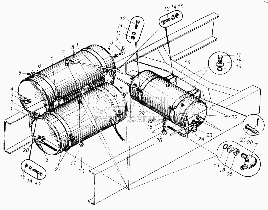 Каталог запасных частей к технике: МАЗ-504В. Крепление воздушных баллонов МАЗ-5335