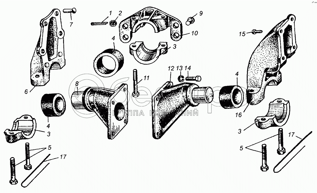 Каталог запасных частей к технике: МАЗ-504В. Подвеска раздаточной коробки МАЗ-509А