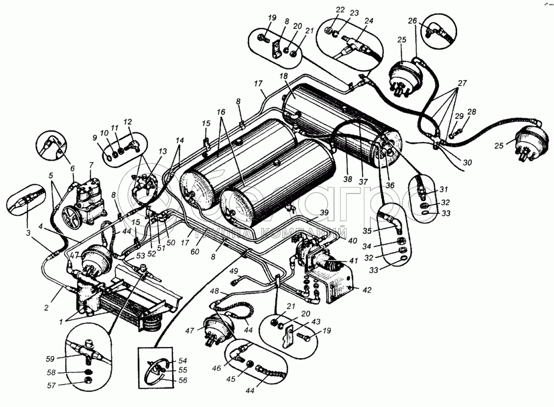 Каталог запасных частей к технике: МАЗ-504В. Привод пневматический тормозов МАЗ-5549