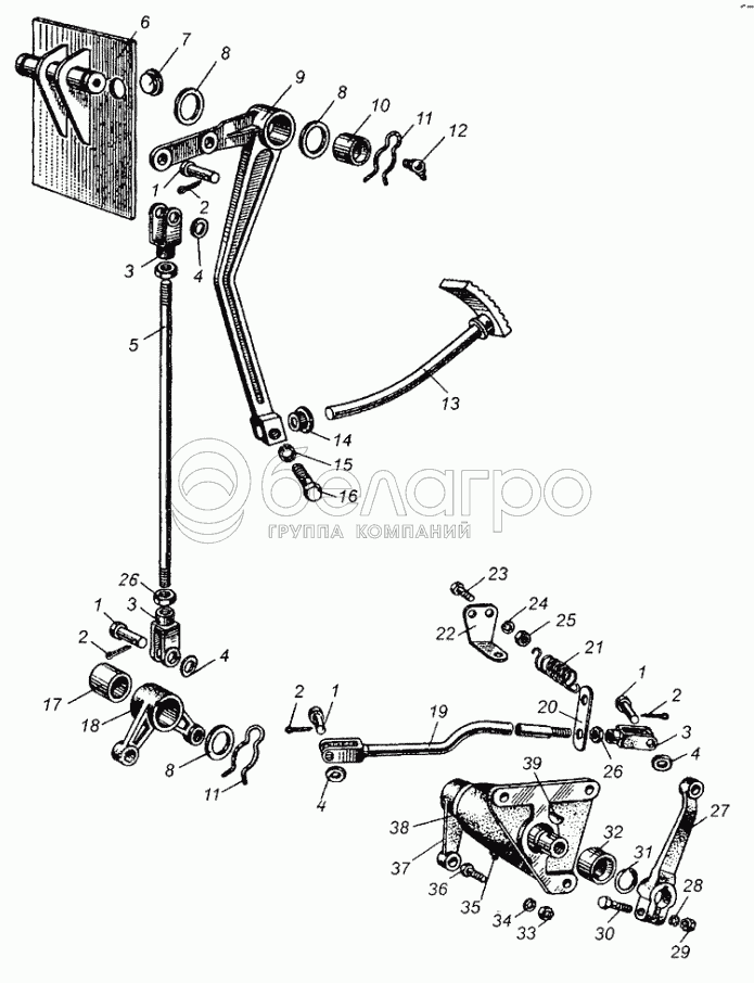 Каталог запасных частей к технике: МАЗ-504В. Привод выключения сцепления