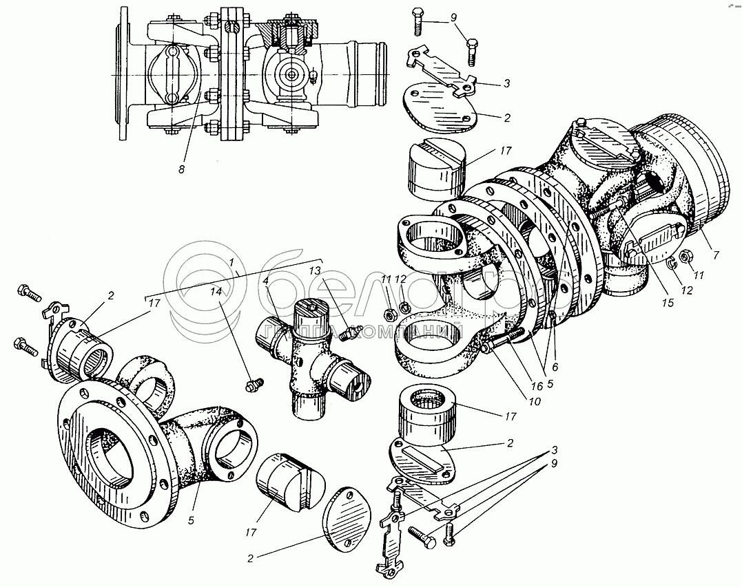Каталог запасных частей к технике: МАЗ-504В. Вал карданный промежуточный МАЗ-509А