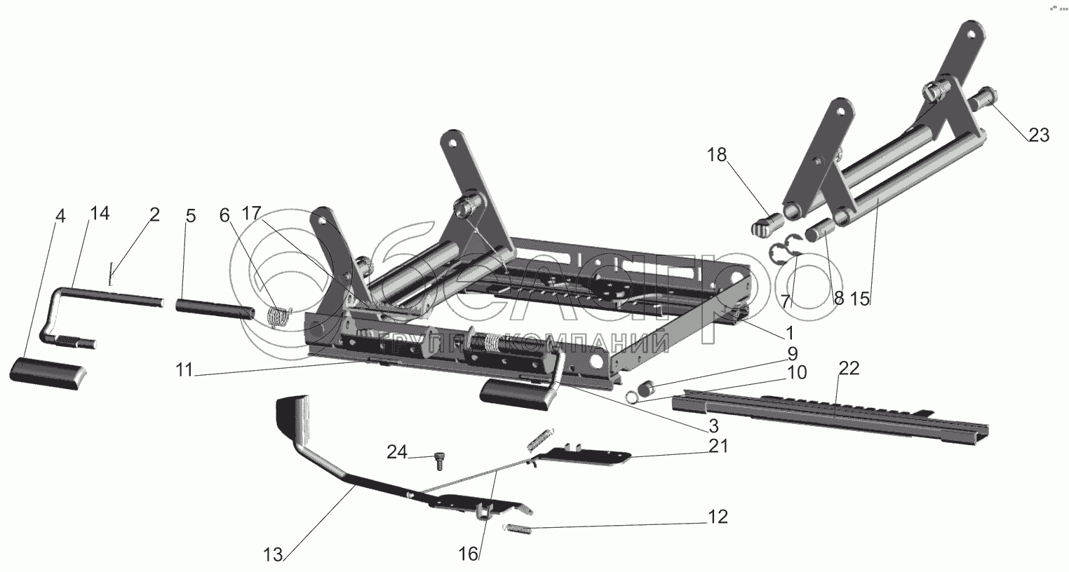 Каталог запасных частей к технике: МАЗ-530905. Механизм регулирования высоты