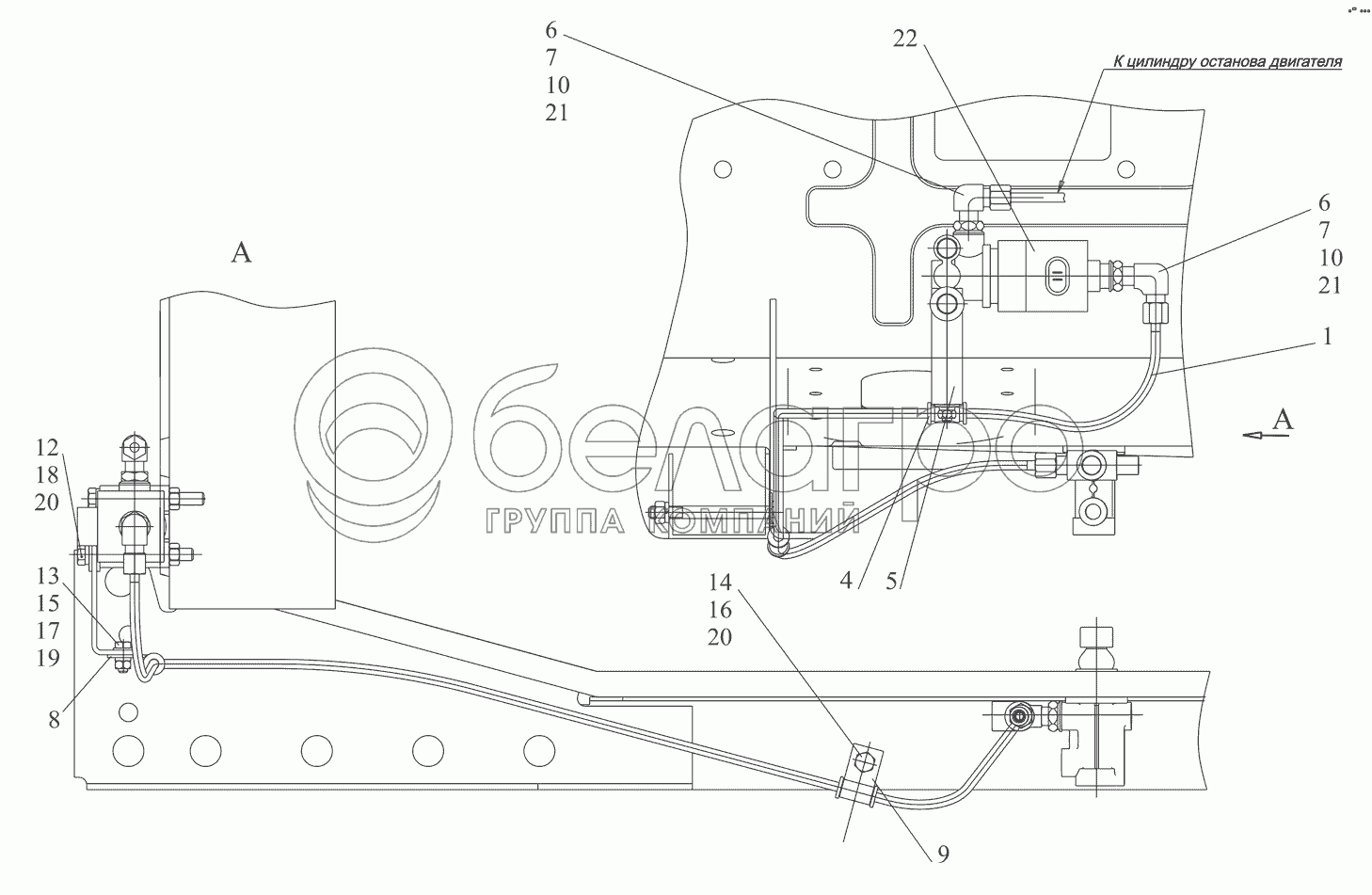 Каталог запасных частей к технике: МАЗ-530905. Привод выключения двигателя противоугонным устройством 544008-1115004