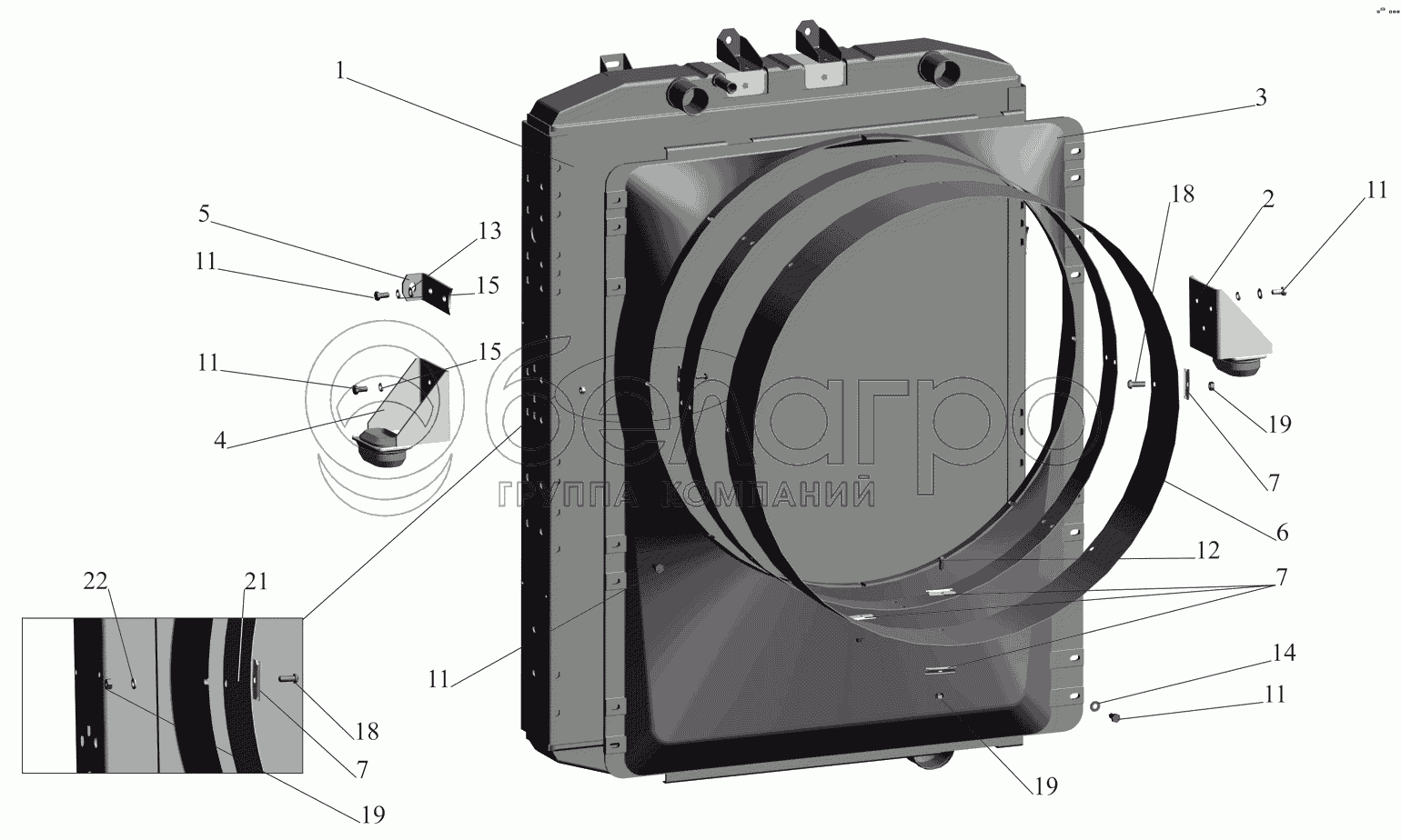 Каталог запасных частей к технике: МАЗ-530905. Радиатор с кожухом 530905-1301009
