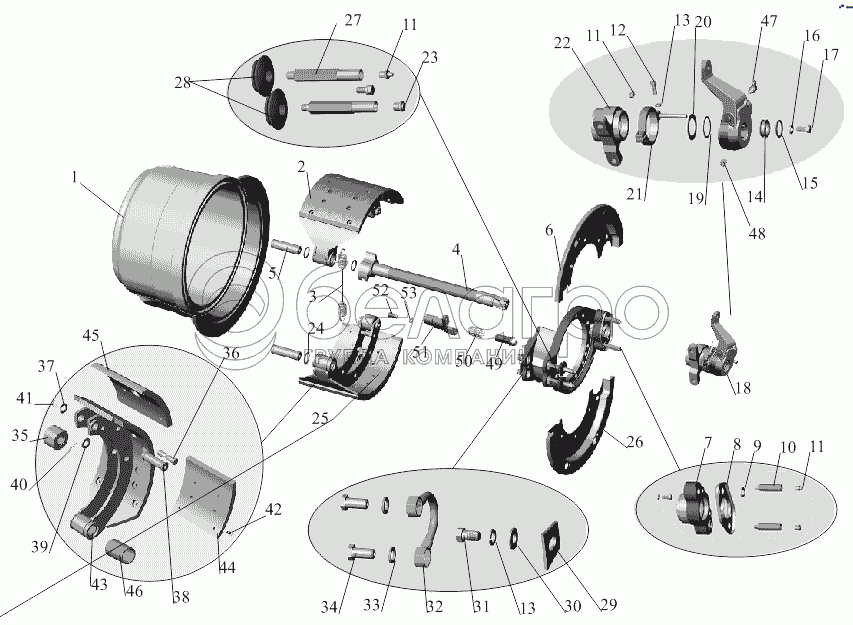 Каталог запасных частей к технике: МАЗ-530905. Тормозной механизм задних колес