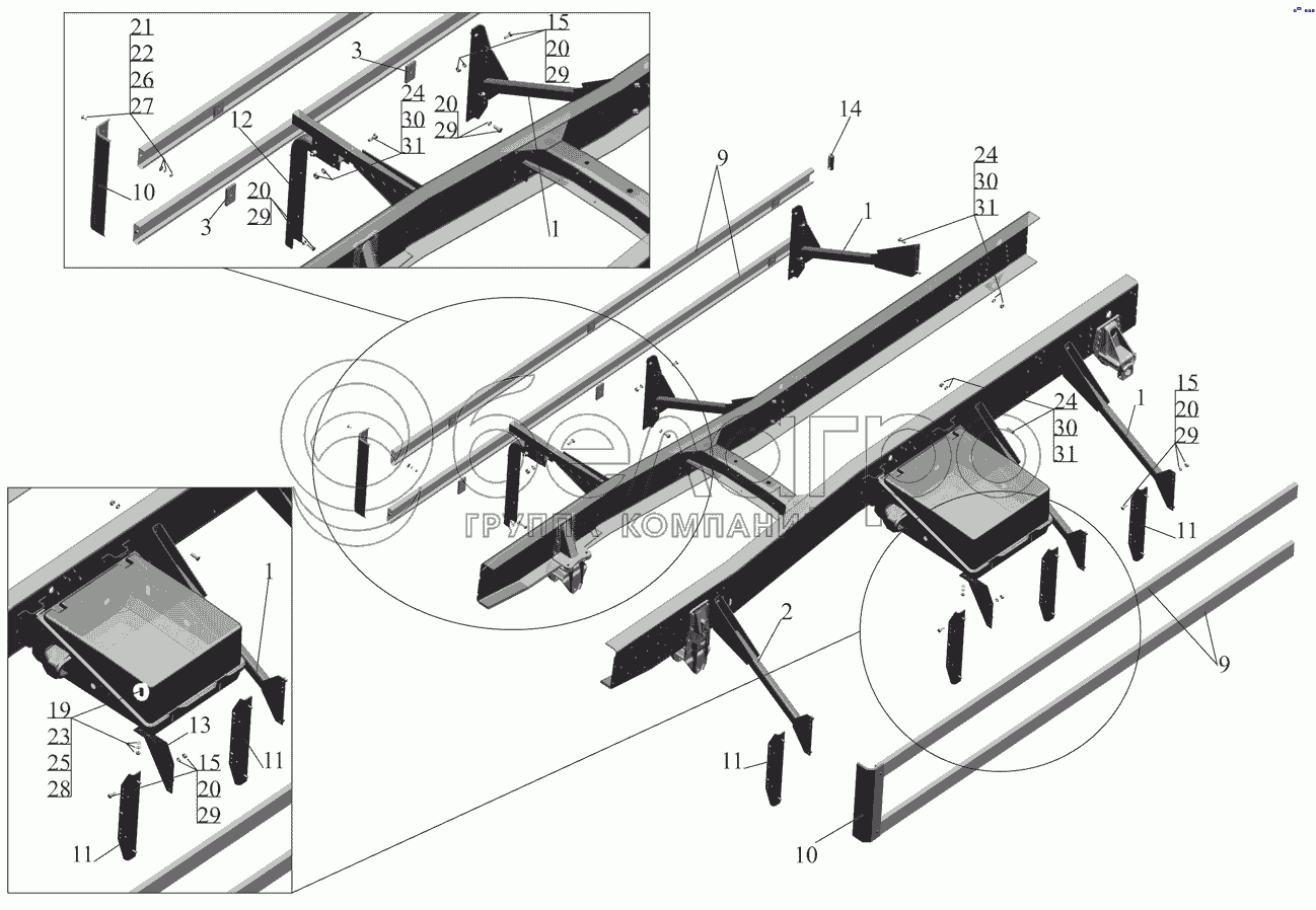 Каталог запасных частей к технике: МАЗ-530905. Установка бокового ограждения 530905-2800040
