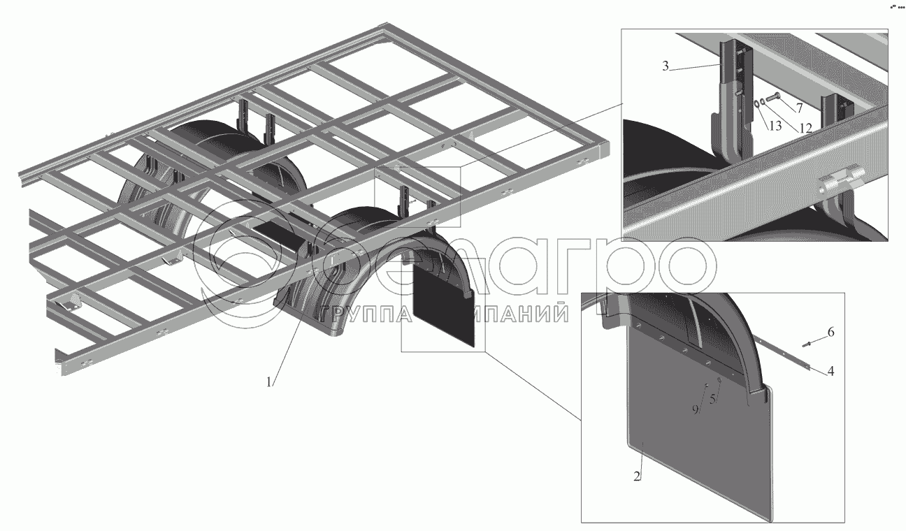 Каталог запасных частей к технике: МАЗ-530905. Установка брызговиков 530905-8500048