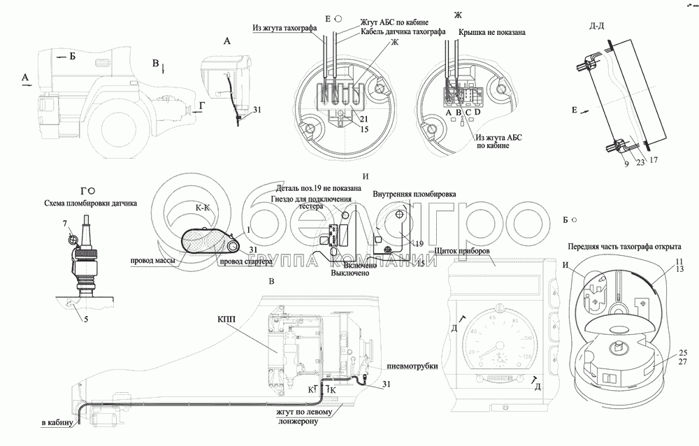 Каталог запасных частей к технике: МАЗ-530905. Установка и пломбировка тахографа 5440-3800005-040