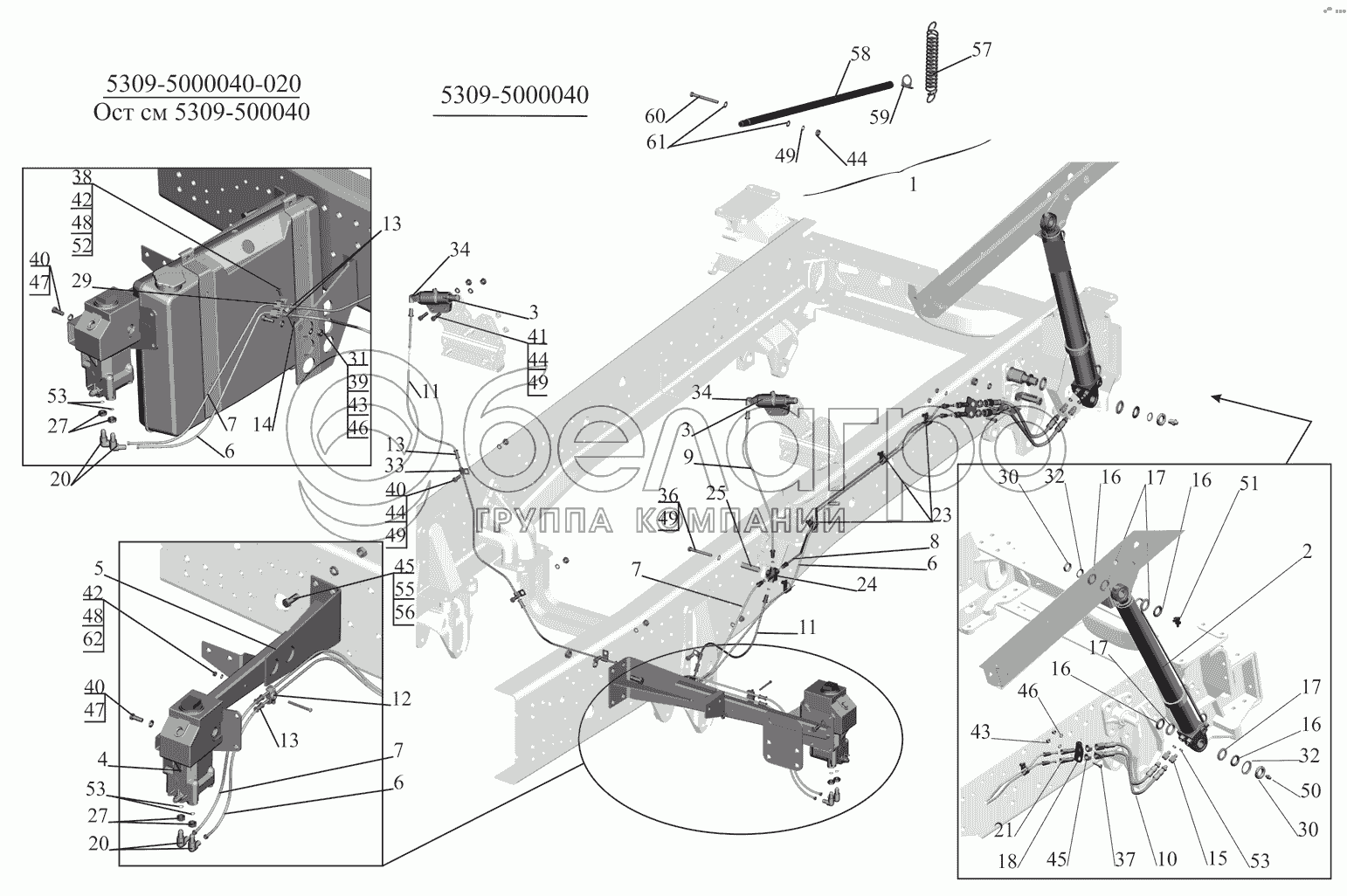 Каталог запасных частей к технике: МАЗ-530905. Установка механизма подъема кабины