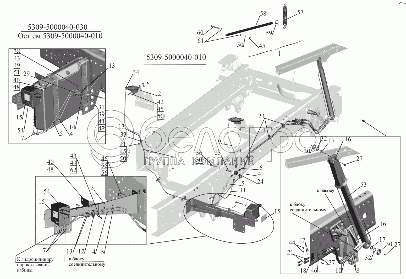 Каталог запасных частей к технике: МАЗ-530905. Установка механизма подъема кабины