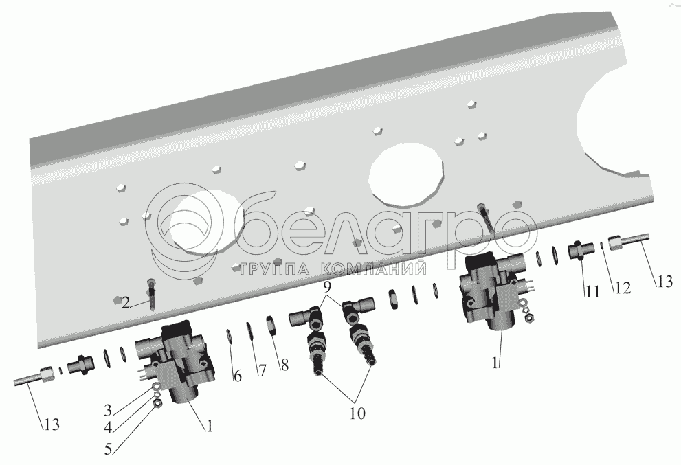 Каталог запасных частей к технике: МАЗ-530905. Установка модуляторов и присоединительной арматуры