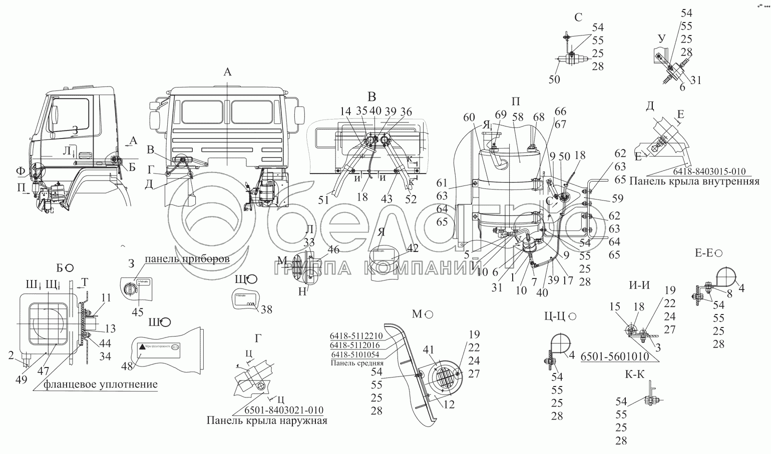 Каталог запасных частей к технике: МАЗ-530905. Установка независимого воздушного отопителя 5309-8100002-011