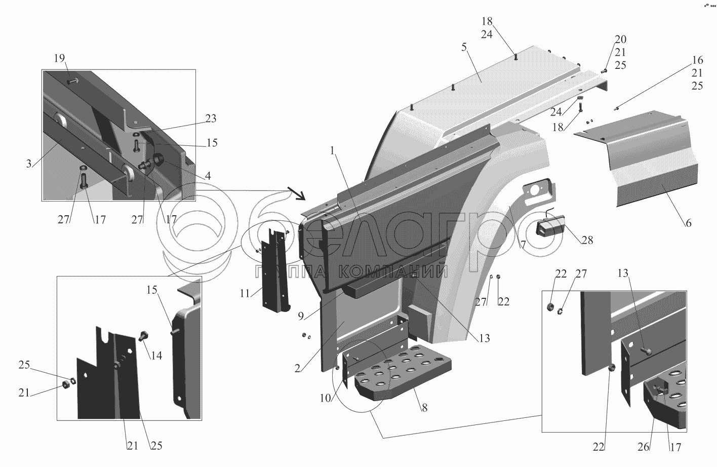Каталог запасных частей к технике: МАЗ-530905. Установка оперения 5309-8400020-010