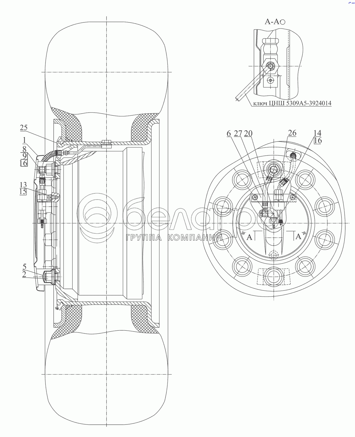 Каталог запасных частей к технике: МАЗ-530905. Установка передних колес