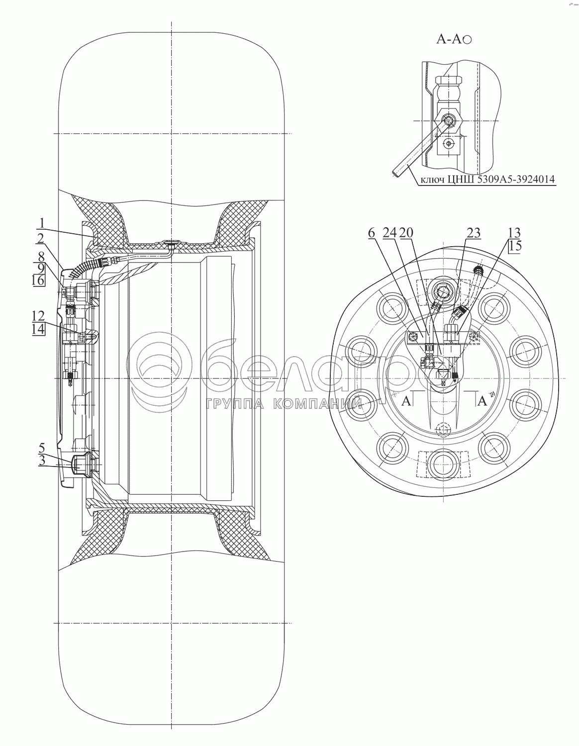 Каталог запасных частей к технике: МАЗ-530905. Установка передних колес 5309A5-3100005